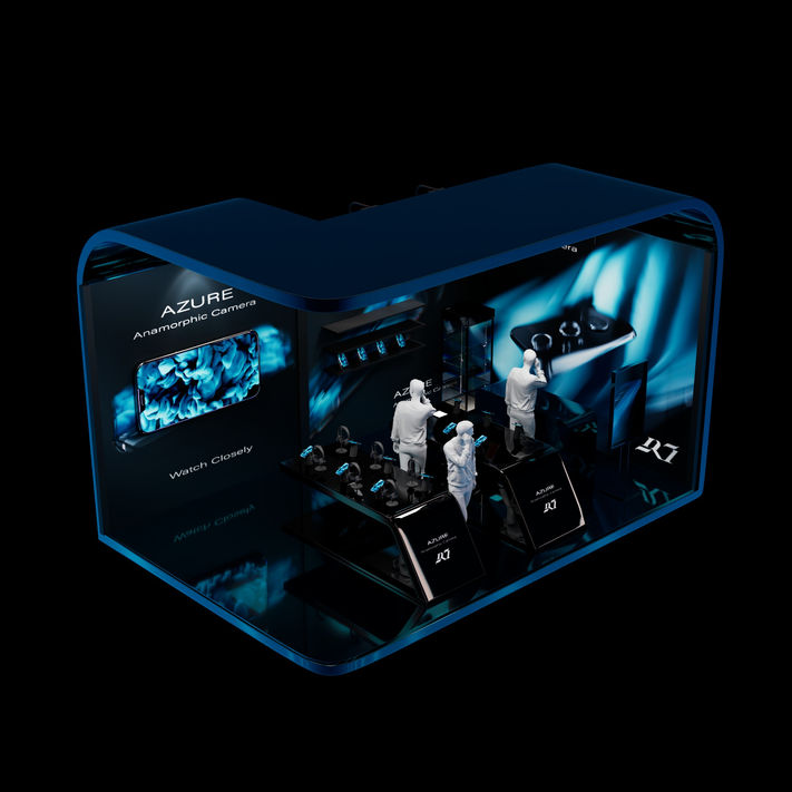 The exhibition booth was designed to draw attendees in with bold visuals and an immersive atmosphere. The cool blue tones kept things sleek and modern, creating a high-tech vibe that matched the cinematic feel of the lens. The goal wasn’t just to show off the product, but to make people feel the rush of capturing pro-level visuals straight from their phone.